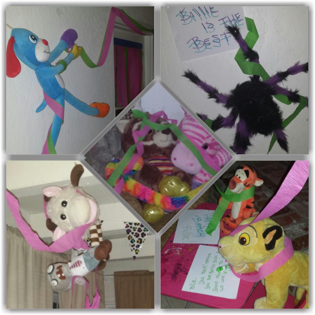 Billie’s birthdays have usually been lonely. We moved a lot and she is an only child. But she never minded because she always had her stuffed animals. Each one had a different name, lifestyle, and backstory. I have never seen a child connect with their toys the way Billie did with hers.